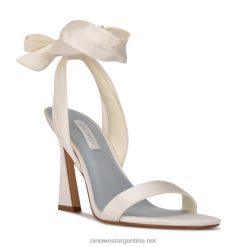 satén blanco casarse con sandalias de tacón con lazo Nine West 0DDT0558