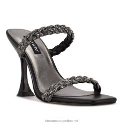 cristal negro sandalias con tacón y cremallera Nine West 0DDT01809