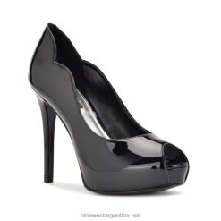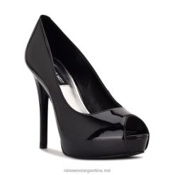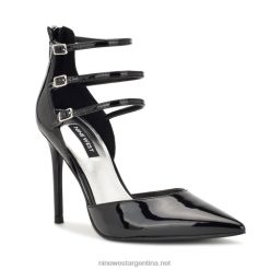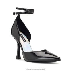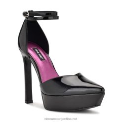 charol negro zapatos de tacón linda con plataforma cruzada en el tobillo Nine West 0DDT01863