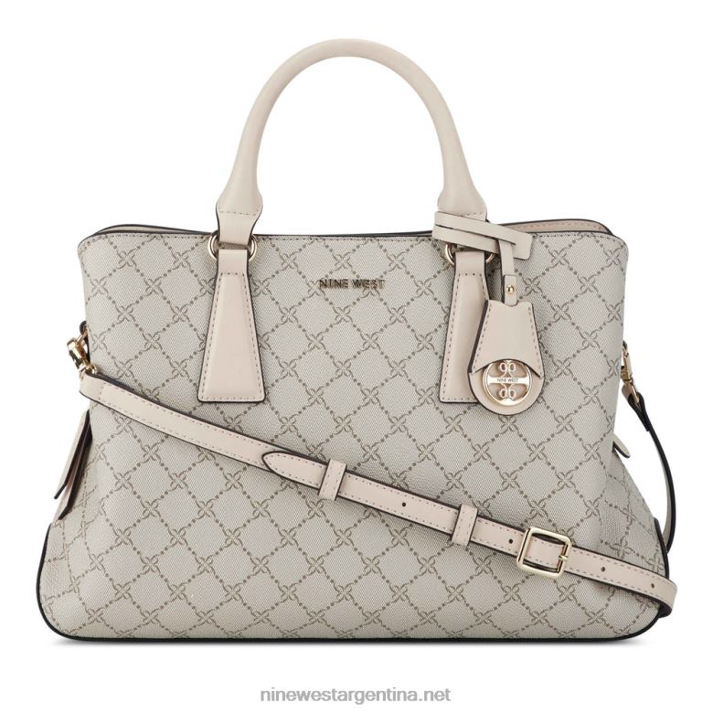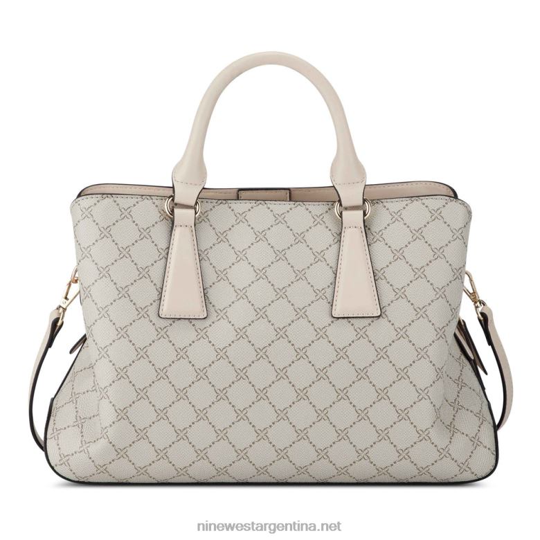 bolso satchel margret jet set de la diseñadora nine west con detalles de herrajes y marca exterior. diseñado con el patrón del logotipo de la firma.