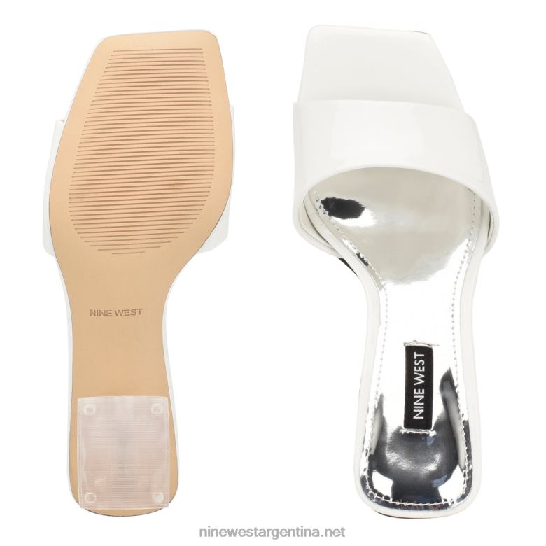 charol blanco sandalias con tacón de roble Nine West 0DDT0362