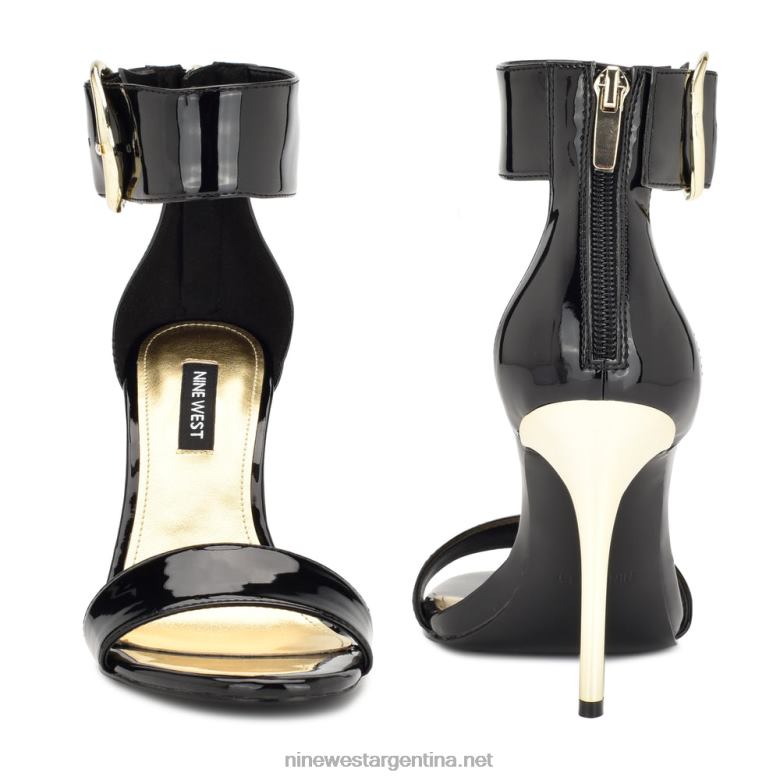charol negro sandalias mova con correa en el tobillo Nine West 0DDT01845