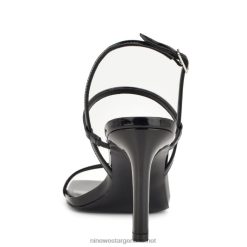 charol negro sandalias Olah con tira trasera y tacón Nine West 0DDT0165