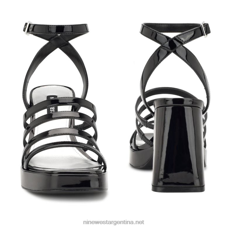 charol negro sandalias Teriss con tiras y plataforma Nine West 0DDT0282
