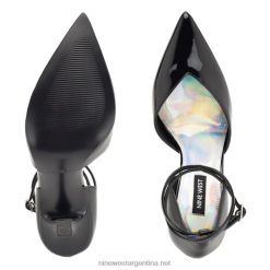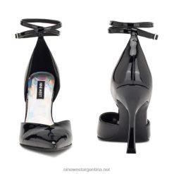 charol negro zapatos de tacón frends d’orsay con correa en el tobillo Nine West 0DDT01380