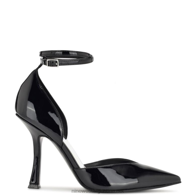 charol negro zapatos de tacón frends d’orsay con correa en el tobillo Nine West 0DDT01563