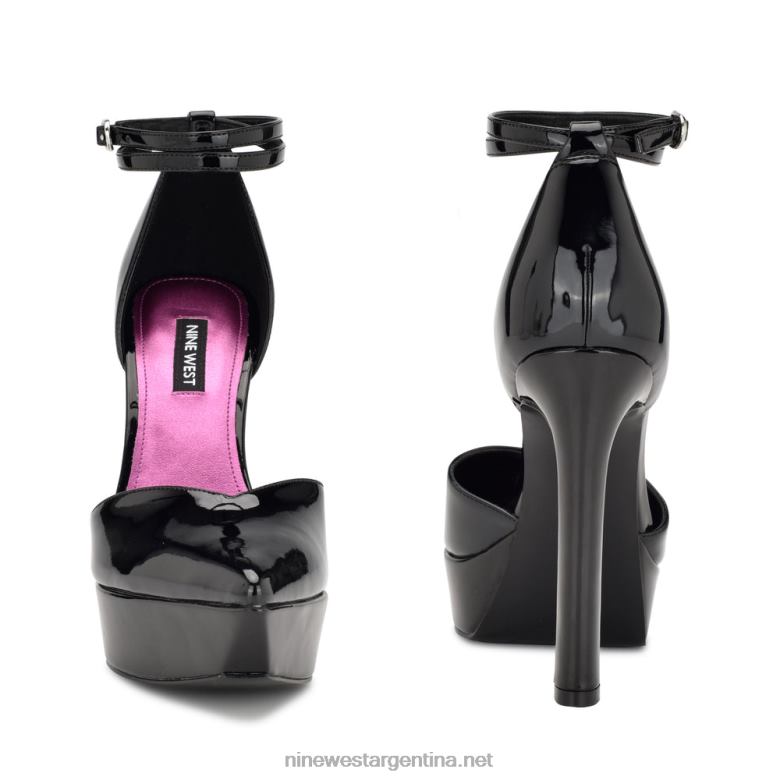 charol negro zapatos de tacón linda con plataforma cruzada en el tobillo Nine West 0DDT01326