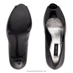 charol negro zapatos de tacón peep toe con plataforma hethr Nine West 0DDT01826