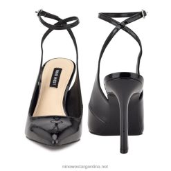 charol negro zapatos de tacón tabita con correa en el tobillo Nine West 0DDT01550
