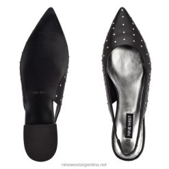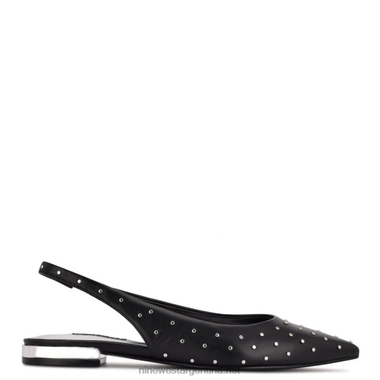 cuero negro tachonado zapatos planos con puntera en punta lucee slingback Nine West 0DDT01113
