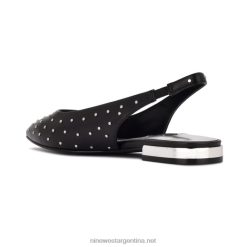 cuero negro tachonado zapatos planos con puntera en punta lucee slingback Nine West 0DDT02222
