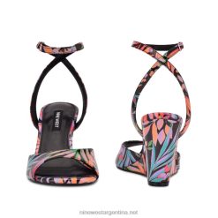 estampado tropical negro sandalias nevr con correa en el tobillo y cuña Nine West 0DDT0788