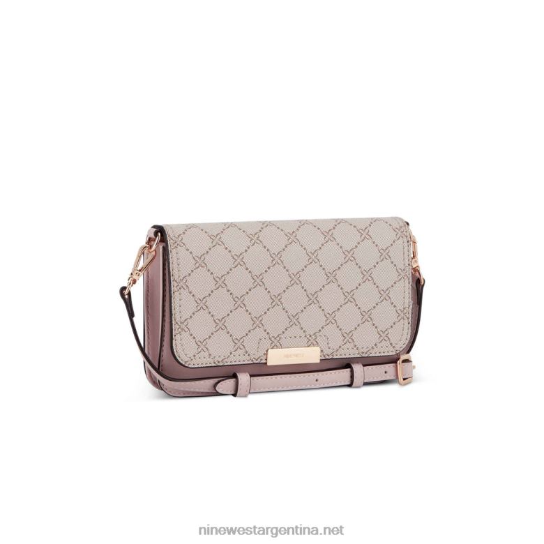 billetera de diseñador nine west en una cuerda con foco de detalle de hardware y cierre de solapa. función de billetera completa con tarjeta, cremallera y ventana de identificación. incluye una correa cruzada removible para un estilo de manos libres y se separa para usarla como billetera para su bolso de mano nine west más grande.