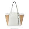 bolso tote mini elite jenae de nine west con detalles de herrajes y marca exterior. diseñado con un look de bloque de color de temporada tejido, seguro que añadirá un hermoso look primaveral a tu atuendo diario. Úselo todos los días o quítese el bolso cruzado para usarlo en una ocasión con un estilo de bolso mini con asa superior.