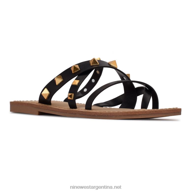 La sandalia Nine West Cerri añade un toque de glamour a cualquier atuendo informal para clima cálido. esta sandalia plana presenta correas cruzadas con tachuelas asimétricas de diferentes anchos y un elegante diseño de anillo en la puntera.