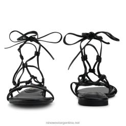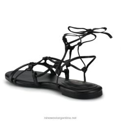 negro sandalias planas cruzadas en el tobillo con botones Nine West 0DDT066