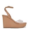 La sandalia con correa en el tobillo con plataforma klear va a ser una cuña en tu guardarropa. la cuña ultraalta te brinda la altura adicional que deseas y la parte superior transparente de moda agrega algo de diversión a esta cuña para todos los días.