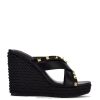 Desde la noche de chicas hasta la noche de cita, la cuña de pipa nine west es una adición vanguardista y sexy a cualquier atuendo. la parte superior entrecruzada con múltiples correas está adornada con elegantes tachuelas y la cuña ultra alta está cubierta con cuerda retorcida.