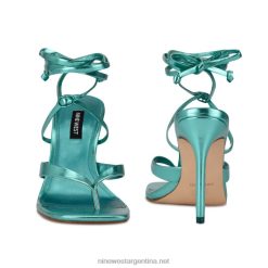 turquesa metalizado sandalias con tacón cruzado en el tobillo Terrie Nine West 0DDT0582