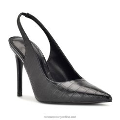 cocodrilo negro grabado zapatos de tacón destalonados con punta de plumas Nine West 0DDT01090