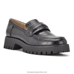 cocodrilo negro grabado mocasines Garren con suela dentada Nine West 0DDT02328