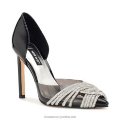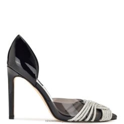 charol negro/malla zapatos de tacón Timie con correa en el tobillo Nine West 0DDT01371