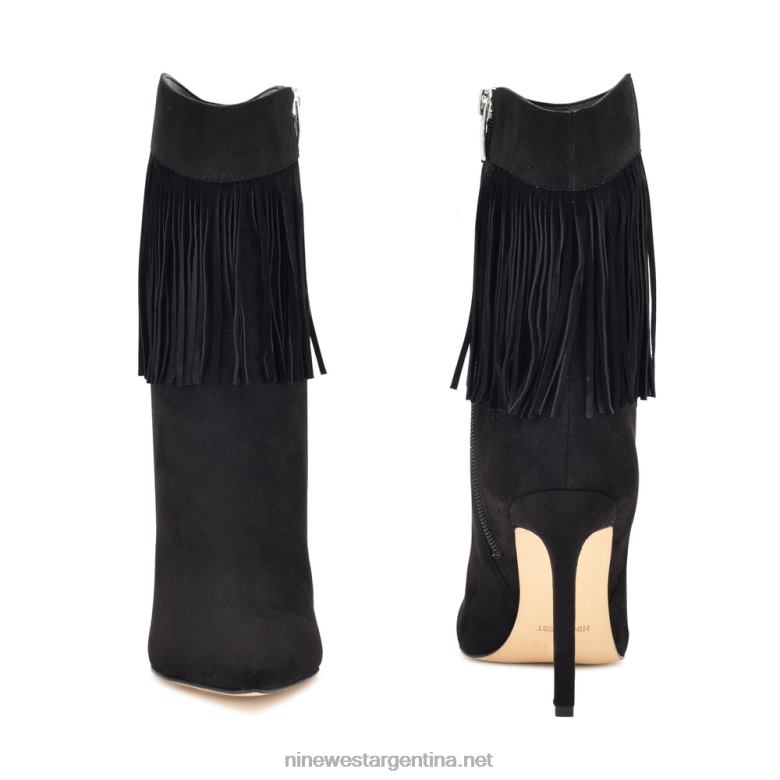 mantente a la moda con los botines de prueba. con un ribete de flecos que añade inspiración occidental a un botín de punta levantado por un tacón de aguja altísimo.