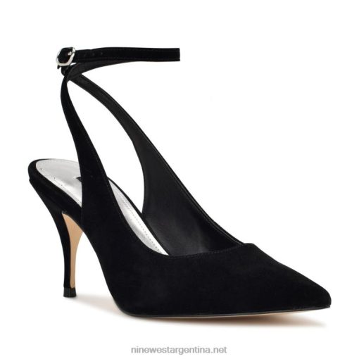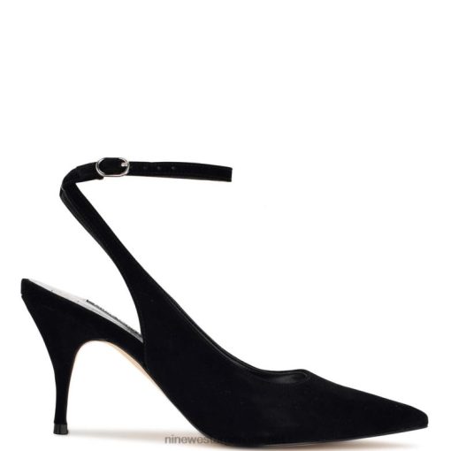 ante negro zapatos de tacón boca con correa en el tobillo Nine West 0DDT01163