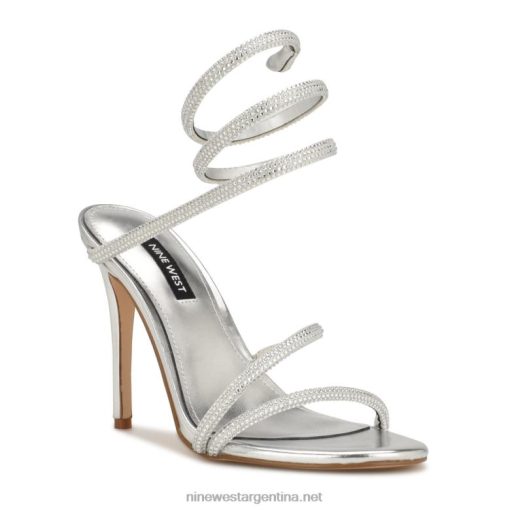 ante plateado brillante sandalias con tacón cruzado en el tobillo Maskil Nine West 0DDT0290
