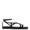 Simple pero sexy, la nueva sandalia plana es una sandalia mínima, apenas visible que será esencial para el clima cálido. esta moderna sandalia de punta cuadrada es una sandalia de estilo tiras con una correa adicional en el tobillo para un detalle extra sexy.