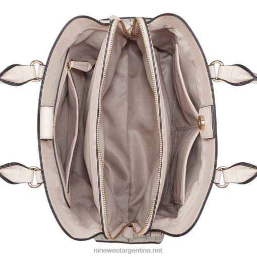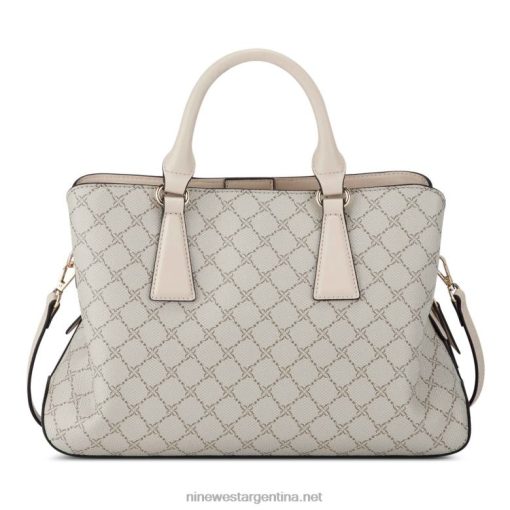 bolso satchel margret jet set de la diseñadora nine west con detalles de herrajes y marca exterior. diseñado con el patrón del logotipo de la firma.