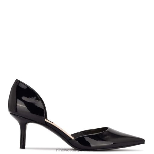 charol negro sandalias con tacón de roble Nine West 0DDT0363