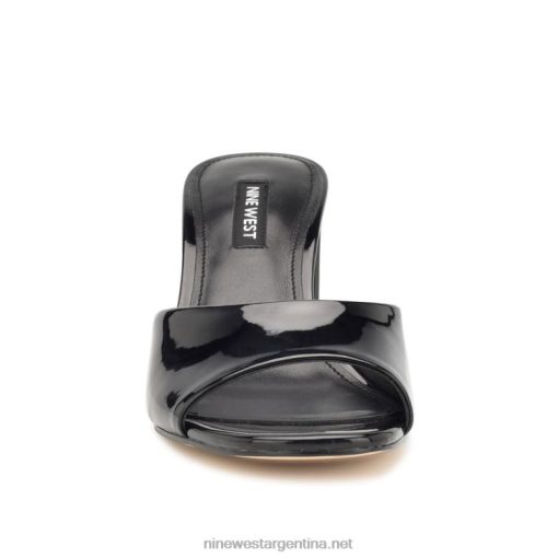 charol negro sandalias con tacón cuadrado Ferris Nine West 0DDT0205