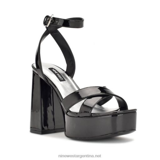 charol negro sandalias joya con plataforma Nine West 0DDT0454