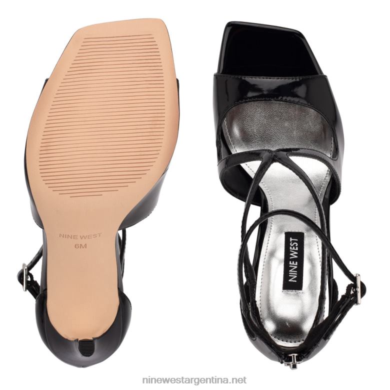 charol negro sandalias tulah con correa en el tobillo Nine West 0DDT0498