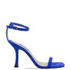 un tacón de aguja alto y una plataforma suave elevan nuestra sandalia de punta abierta zadie con una punta cuadrada actualizada y una correa en el tobillo con cierre de hebilla ajustable.