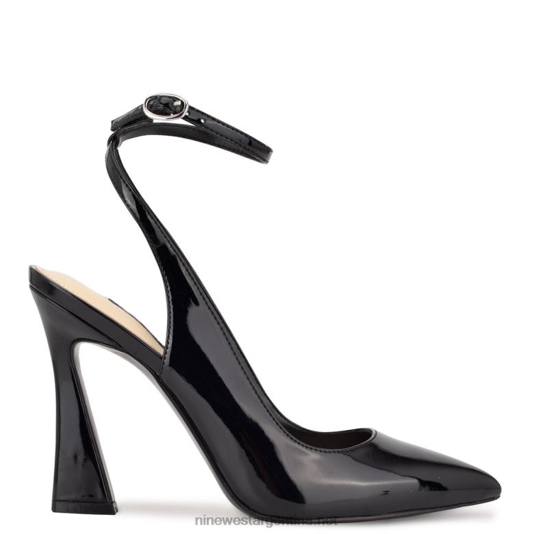 charol negro zapatos de tacón tabita con correa en el tobillo Nine West 0DDT01432