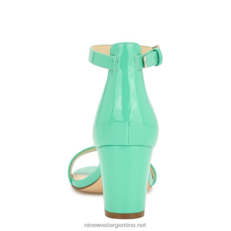 charol verde menta neón sandalias de tacón cuadrado con correa en el tobillo Nine West 0DDT0180