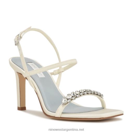 Sandalias de tacón oreece destalonadas en cristal satinado color marfil