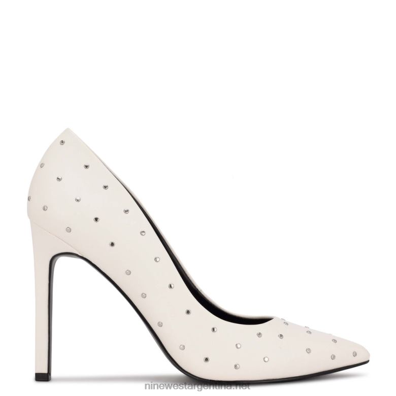 cuero blanco tachonado zapatos de salón Tatiana con puntera en punta y tachuelas Nine West 0DDT01364