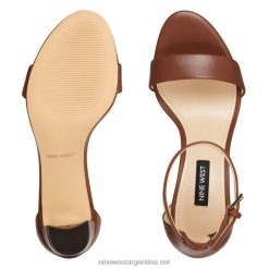cuero marrón oscuro sandalias de tacón cuadrado con correa en el tobillo Nine West 0DDT02406