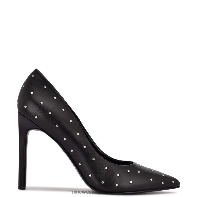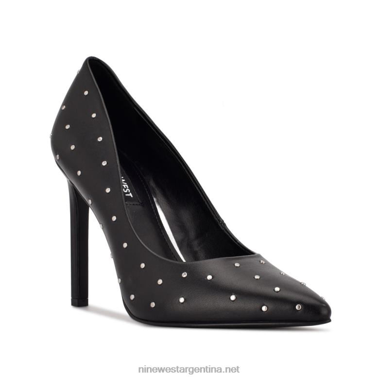 cuero negro tachonado zapatos de salón Tatiana con puntera en punta y tachuelas Nine West 0DDT01525