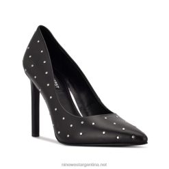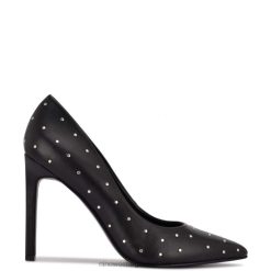 cuero negro tachonado zapatos de salón Tatiana con puntera en punta y tachuelas Nine West 0DDT01365