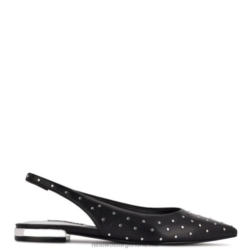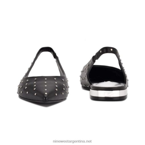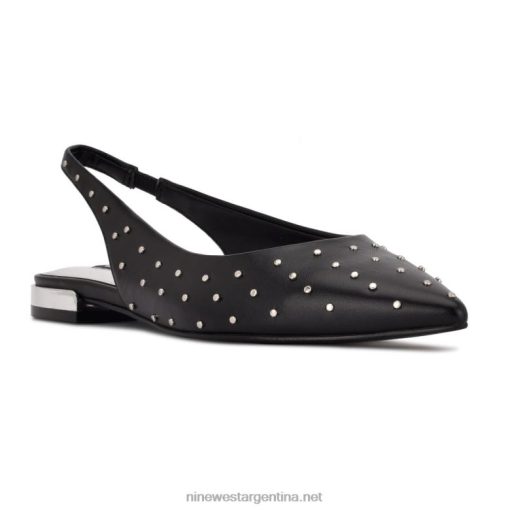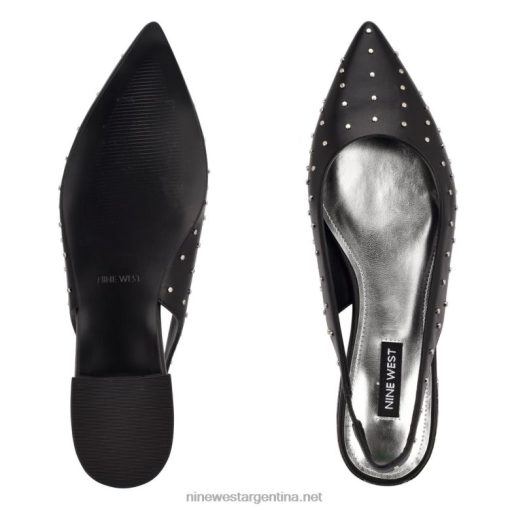 cuero negro tachonado zapatos planos con puntera en punta lucee slingback Nine West 0DDT02222