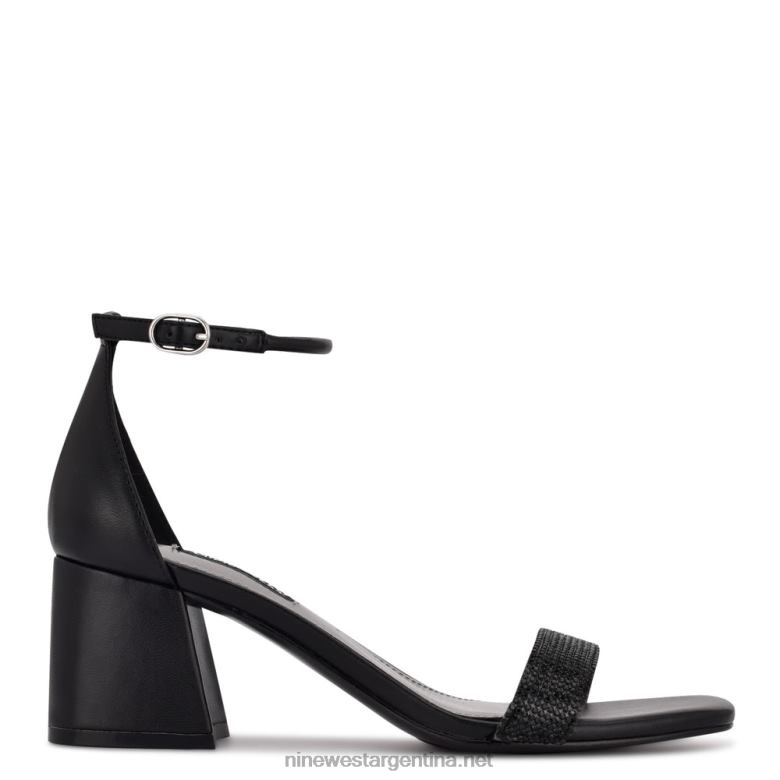 diamante negro sandalias Gretal con correa en el tobillo y tacón cuadrado Nine West 0DDT0495