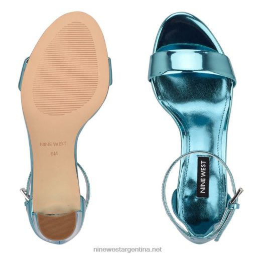 espejo azul metalizado sandalias de tacón cuadrado con correa en el tobillo Nine West 0DDT0528