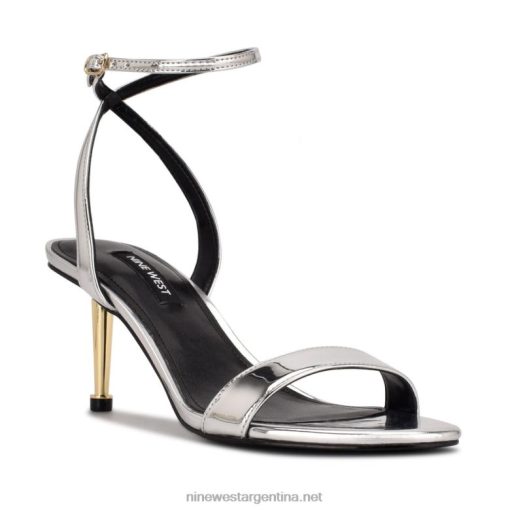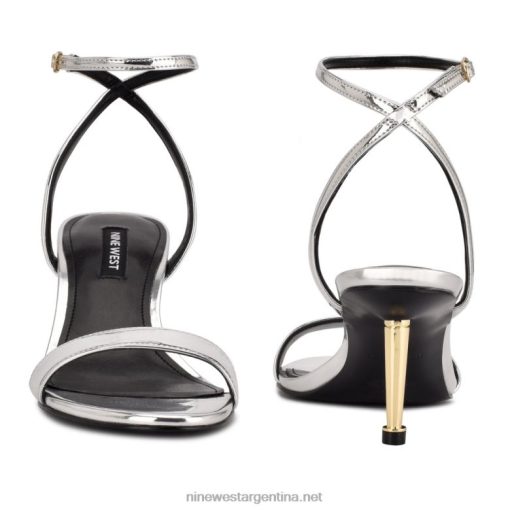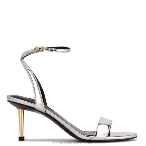 espejo plateado metalizado sandalias anny con correa en el tobillo Nine West 0DDT0456