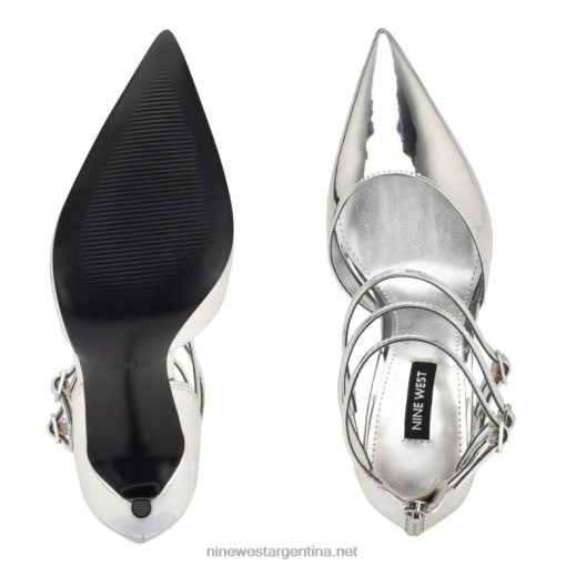 espejo plateado metalizado zapatos de tacón con tiras frann d’orsay Nine West 0DDT01605