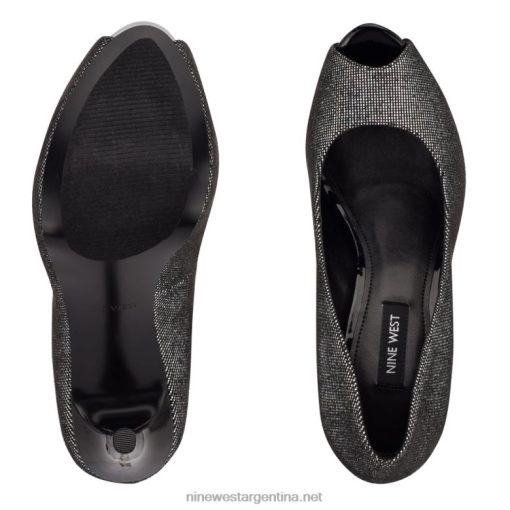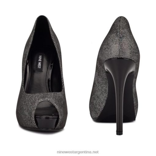 holográfico plateado/negro zapatos de tacón peep toe con plataforma hethr Nine West 0DDT01825