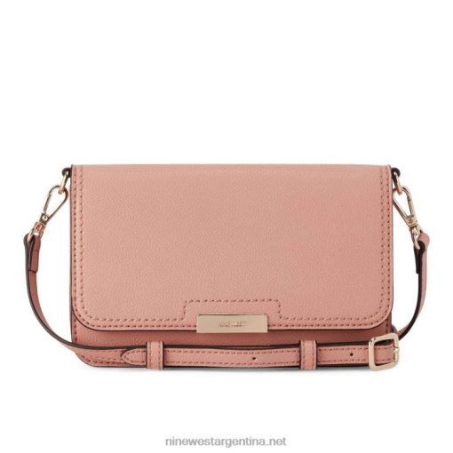 billetera de diseñador nine west en una cuerda con foco de detalle de hardware y cierre de solapa. función de billetera completa con tarjeta, cremallera y ventana de identificación. incluye una correa cruzada removible para un estilo de manos libres y se separa para usarla como billetera para su bolso de mano nine west más grande.